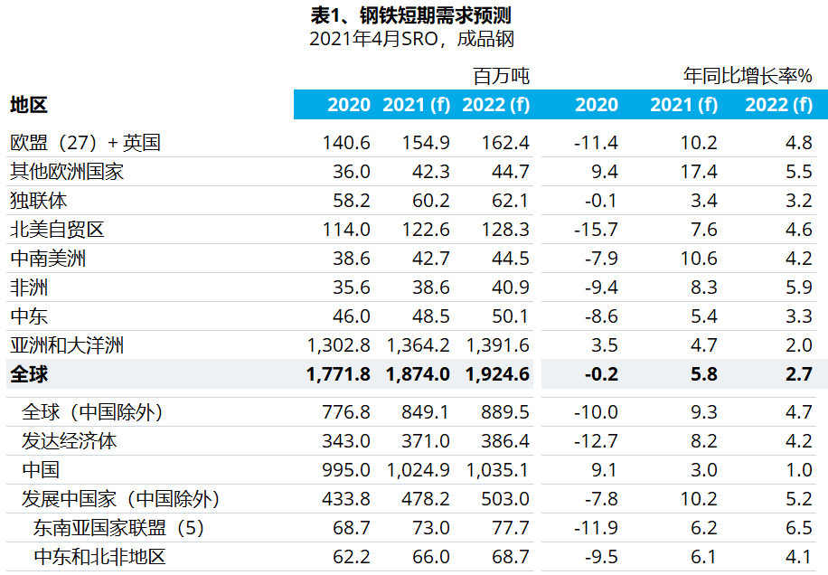 世界鋼鐵協(xié)會發(fā)布短期鋼鐵需求預測